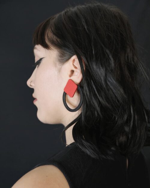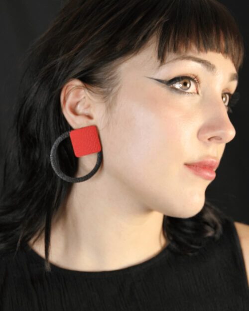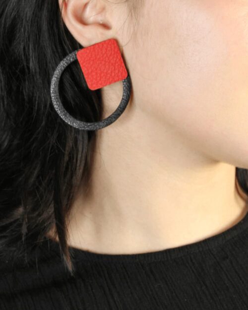 Diese kunstvoll handgefertigten Ohrringe aus echtem Leder begeistern mit einem klaren, geometrischen Design und auffälligem Kontrast. Die Kombination aus rundem Element und farbigem Viereck verleiht ihnen eine moderne und zugleich individuelle Ausstrahlung. Der hypoallergene Edelstahlstecker sorgt für einen angenehmen, sicheren Halt, während der dezente Sitz die Lederdetails perfekt in Szene setzt.